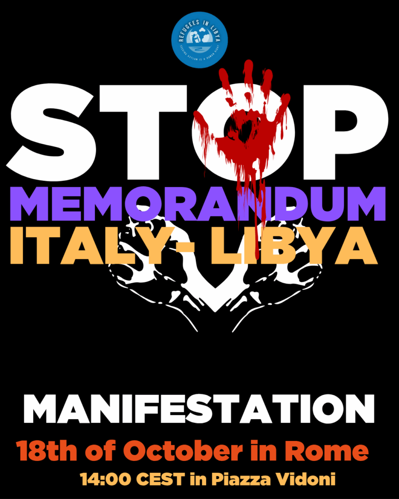 The call and more information: HTTPS://WWW.REFUGEESINLIBYA.ORG/POST/18TH-OF-OCTOBER-CALL-FOR-MANIFESTATION-IN-ROME